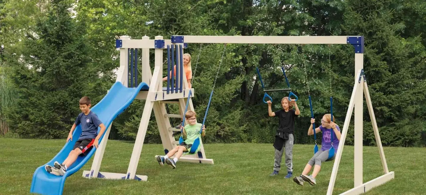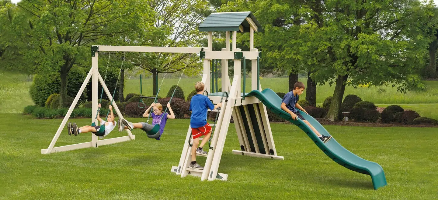 Browse our vinyl, wood, and metal playsets, each designed for lasting quality and safe, reliable outdoor fun for families and communities.
